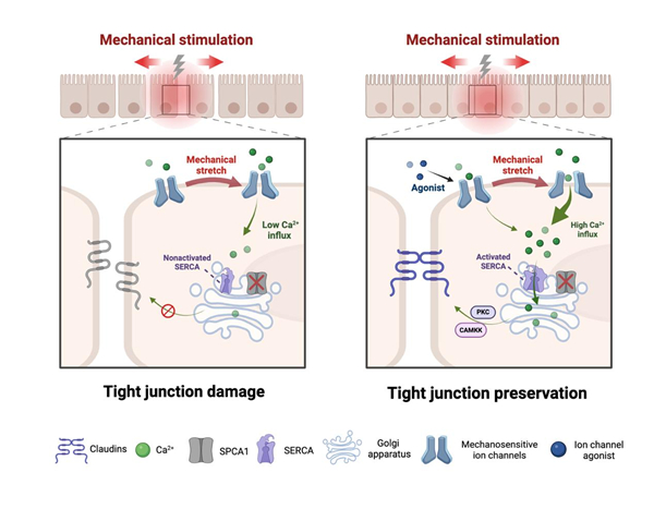 团队提出一种全新的局部靶向治疗策略:利用局部给药系统递送机械敏感钙离子通道激动剂至病变皮肤,通过增强机械刺激下的钙信号,补偿高尔基体钙泵的功能缺失,从而稳定细胞连接、减少水疱发生。(来源:中国科学报 李媛)