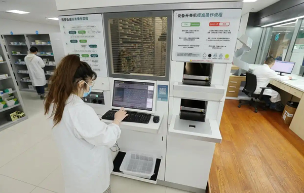 浙江德清县第三人民医院药师在操作发药机器人。新华社发(谢尚国摄) 面对数据瓶颈,学界与产业界正在开辟新路。