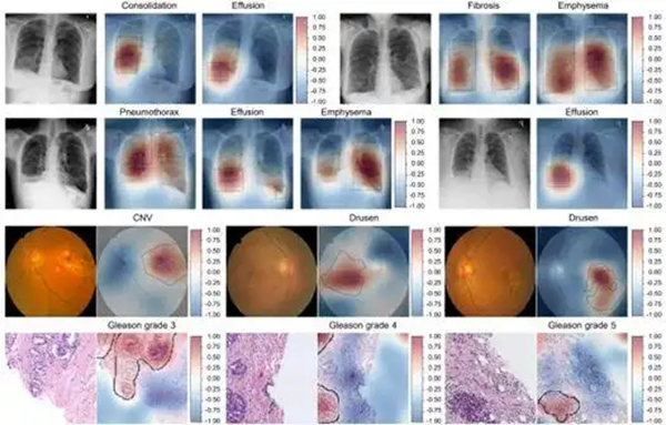 研究团队介绍,“我们让AFLoc 模型同时学习两类信息,一类是医学影像本身,比如胸片、眼底照片或病理切片,另一类是医生撰写的临床报告。通过反复‘对照学习’,AFLoc模型会逐渐明白,临床报告中提到的疾病描述,对应影像中的哪些区域。久而久之,即使没有人工标注,它也能在影像中准确标出最可能的病灶位置。”
