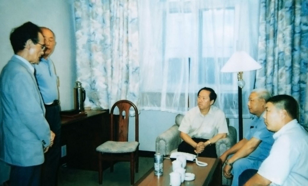 1995年 7月 31日,三尾丰在哈尔滨向王亦兵、王晓光谢罪。自左至右为三尾丰、金源、单文俊、王亦兵、王晓光(王亦兵提供)