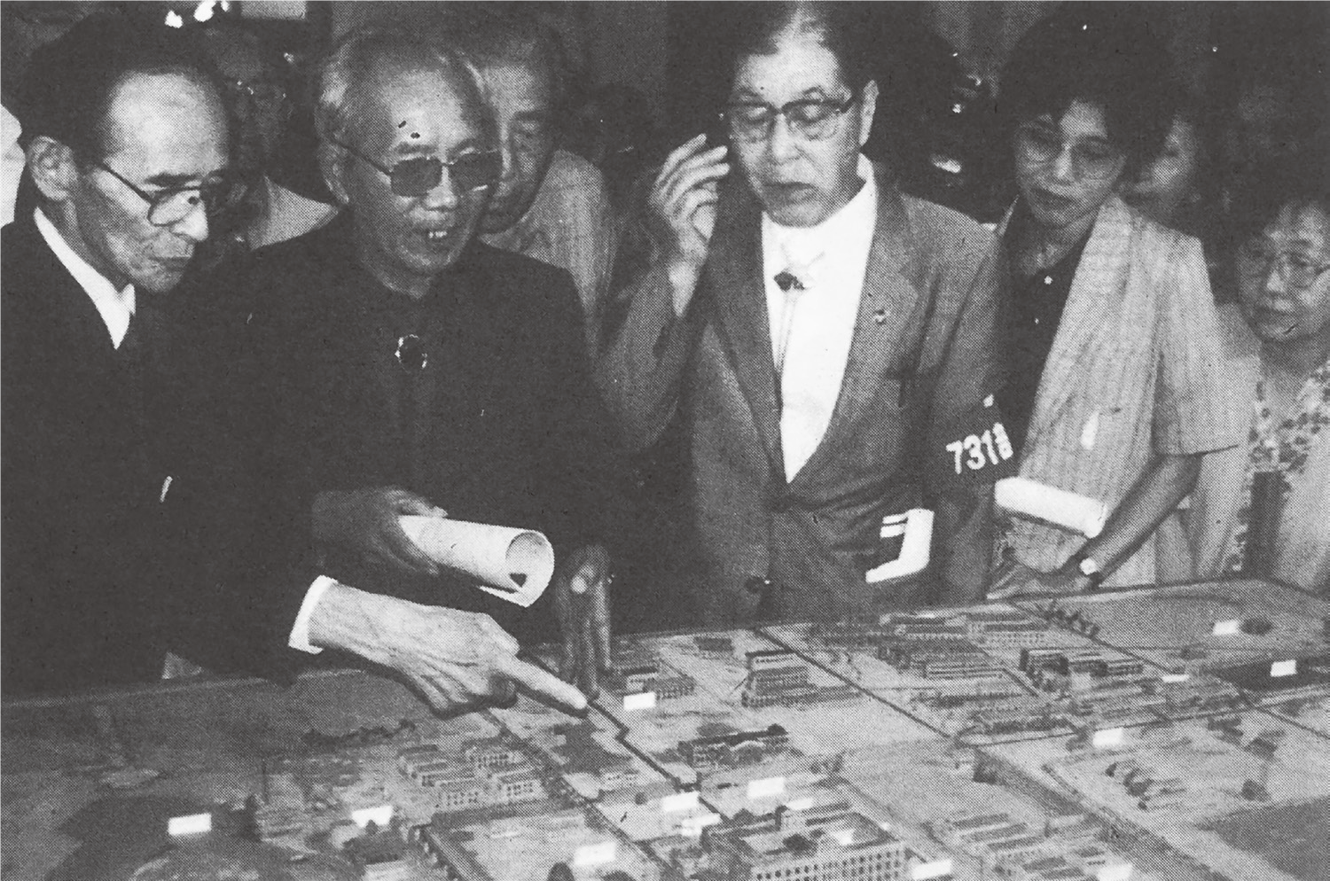 三尾丰(左一)、篠塚良雄(左二)、汤浅谦(左三)参观七三一部队展览 《731:医学的沦陷》一书插图