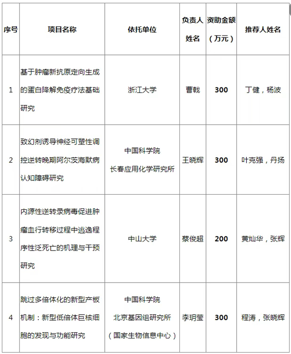 2025年医学科学部第二批专家推荐类原创探索计划项目资助结果公示