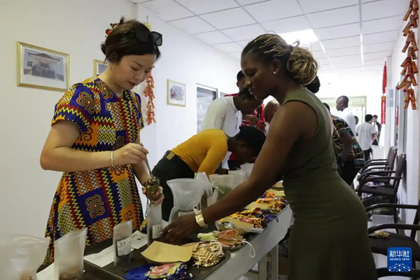 1月8日,在加纳首都阿克拉举行的第三届中加传统医学论坛上,一名中国援加纳医疗队成员展示香囊制作。新华社发(赛特 摄)